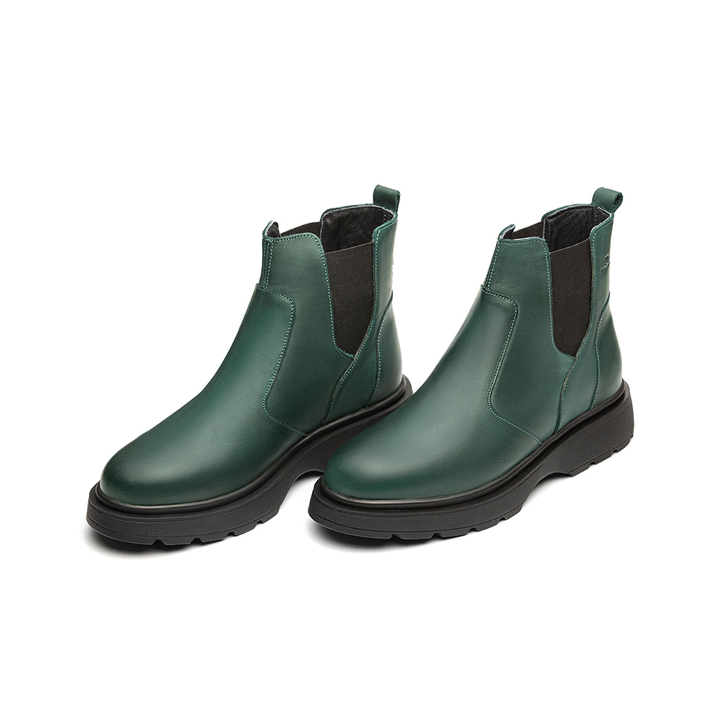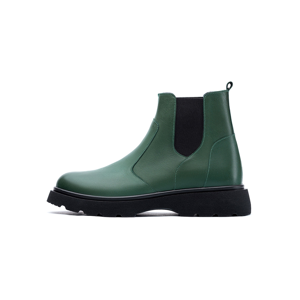 نیم بوت سبز (بیانیهای از سبک شخصی): رنگ سبز زیتونی، گزینهای جسورانه و شیک است. این رنگ به طرز شگفتانگیزی با رنگهای خنثی مانند خاکی، بژ، سرمهای و مشکی هماهنگ میشود و میتواند نقطه کانونی استایل شما باشد.