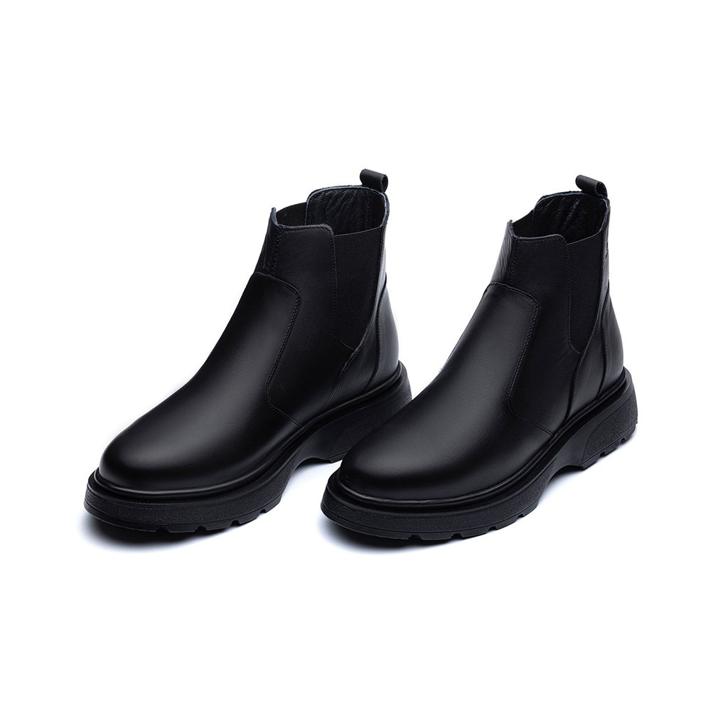 نیم بوت مشکی (کلاسیک و ضروری): رنگ مشکی این مدل، همهکارهترین انتخاب است. آن را با شلوار جین تیره (ذغالی یا مشکی) و یک پلیور یقه اسکی برای استایلی شیک و مینیمال ست کنید. همچنین برای موقعیتهای نیمهرسمی، با شلوار کتان راسته و یک کت تک به خوبی هماهنگ میشود.