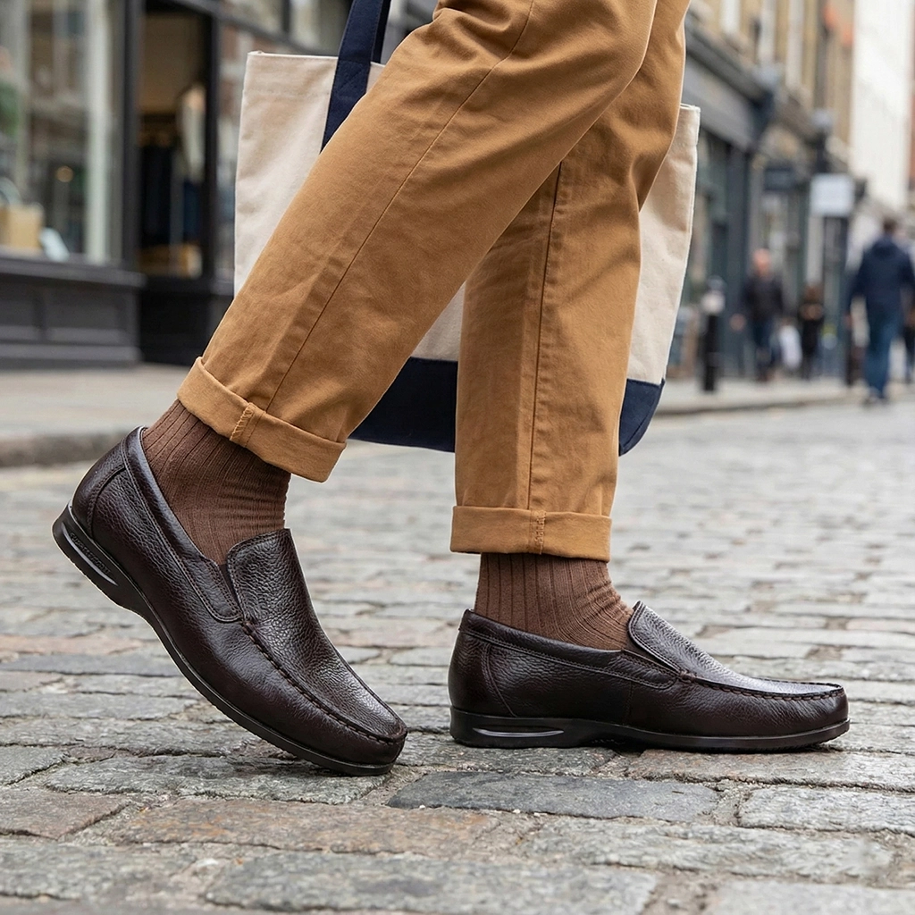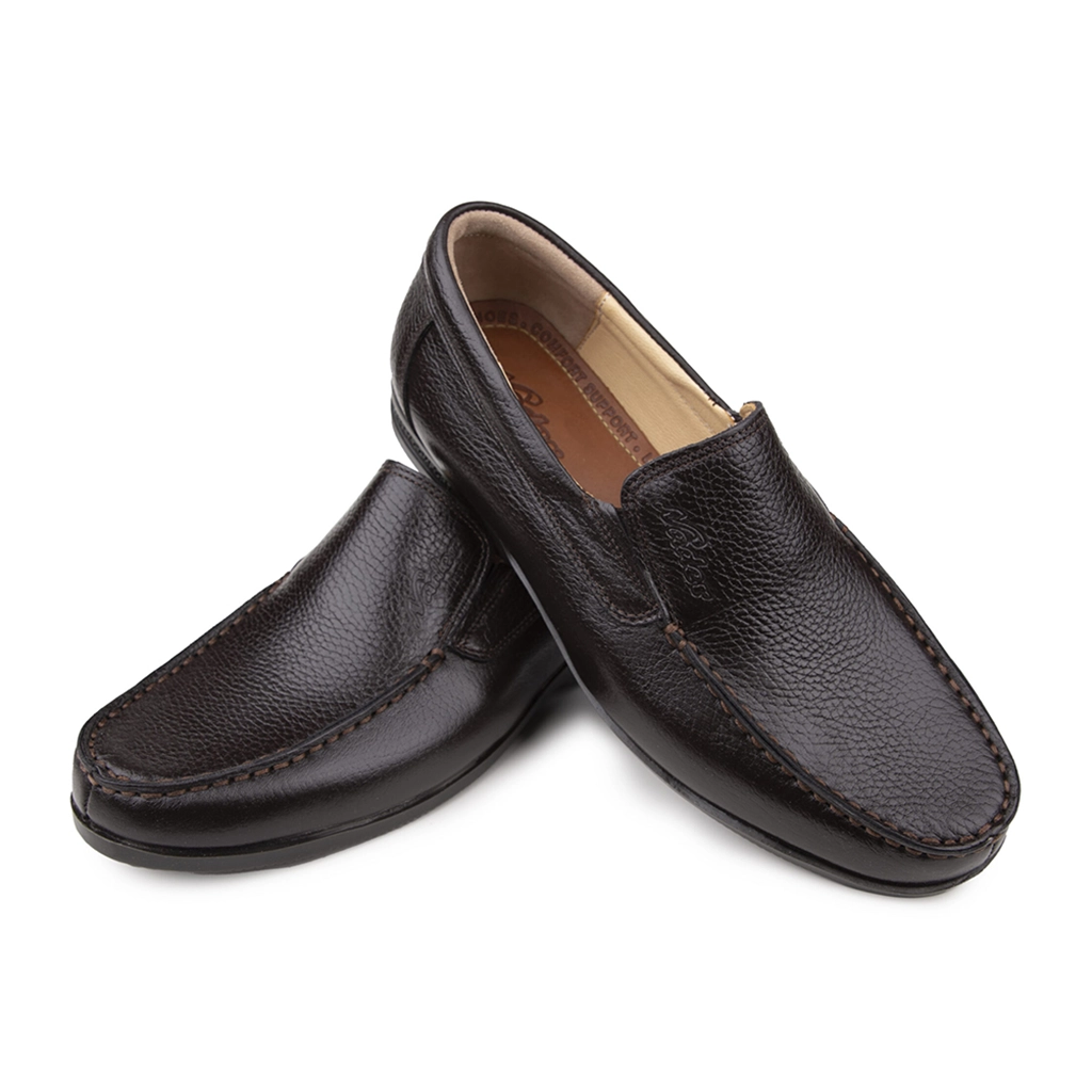 رنگ قهوهای: انتخابی عالی برای استایلهای روزمره و ست کردن با شلوار کتان کرم یا جین. ترکیب رویه چرم گاوی و آستر چرم بزی، دوام و بهداشت (عدم بوی بد پا) را همزمان برای شما به ارمغان میآورد.